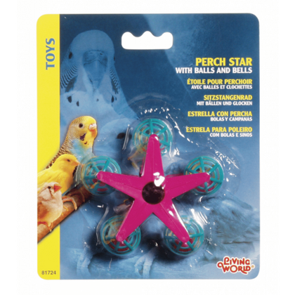 Sjovt legetøj til fugle, som er formet som en stjerne. Legetøjet er med bolde og klokker, som kan dreje rundt.