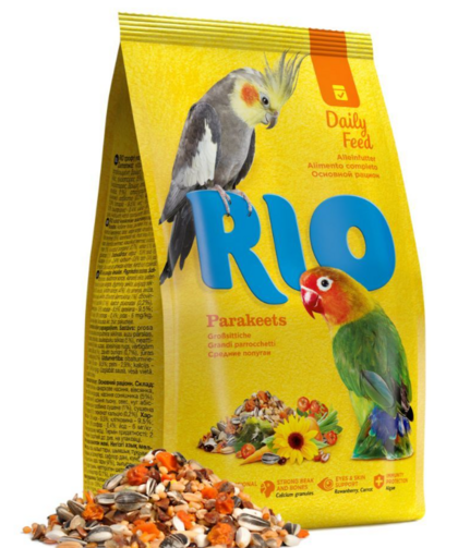RIO foder til store parakitter er en blanding af særligt udvalgte sunde kerner og frø, elsket af kakatieler, dværgpapegøjer og andre slags store parakitter. Det store udvalg af ingredienser sikrer, at fuglene får alle de nødvendige næringsstoffer.