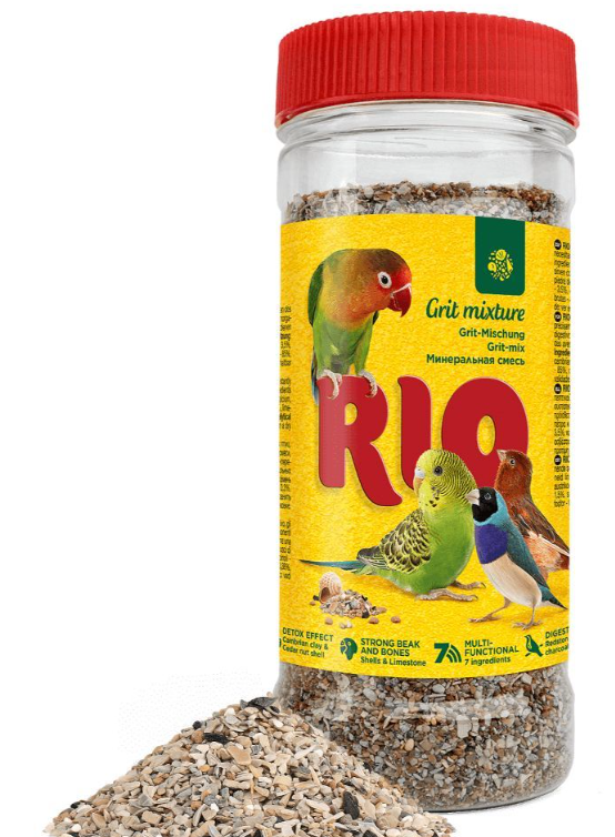 Sammen med hovedføden skal fugle konstant forsynes med grit på grund af deres fordøjelsessystem. Økologiske og uorganiske ingredienser hjælper med at male hårde frø i fuglenes maveog tjener som en ekstra kilde til calcium, fosfor, natrium og andre mineralske stoffer.