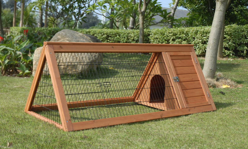 Stort og rummeligt græsningsbur, hvor der er god plads til at kaninen kan bevæge sig rundt på græsset, eller hygge sig inde i huset. Buret kan åbnes fra siden både i gitteret og i huset.