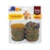Indholdet består af hø, æble, hyben og palmefibre, som tilsammen skaber en velsmagende og nærende snack, der fremmer dyrets trivsel og giver en langvarig gnaveoplevelse.