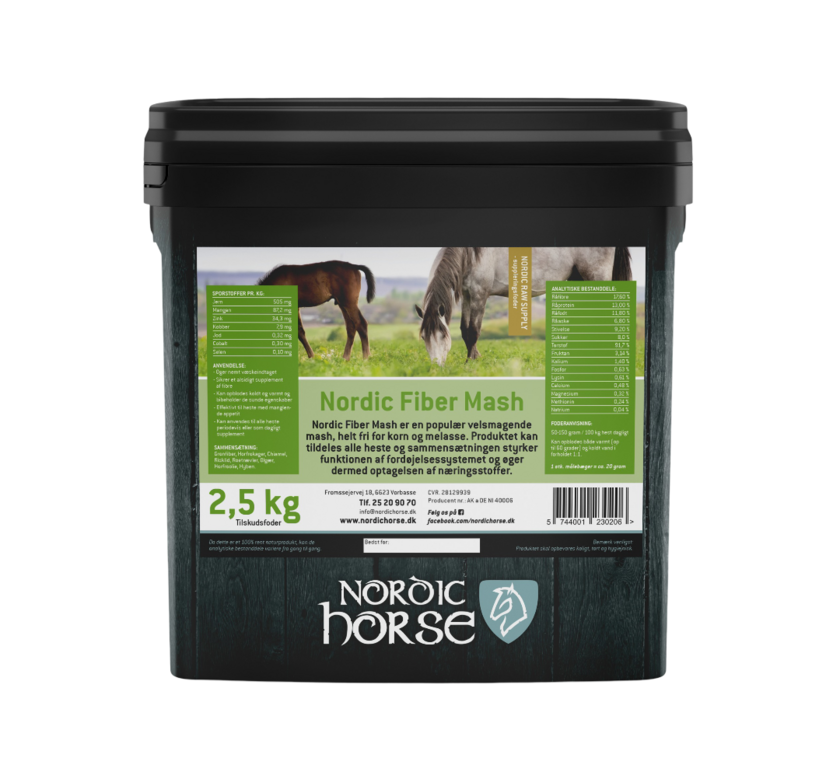 Nordic Fiber Mash er en strukturholdig og velsmagende mash med et højt indhold af fibre, helt uden korn, melasse samt syntetiske vitaminer og mineraler. Den er baseret på alpehø med en stor diversitet af græsser og urter, kombineret med roetrævler, ølgær og sunde fedtkilder, som tilsammen giver et komplet fibertilskud. Mashen tilfører desuden hesten værdifulde omega 3 fedtsyrer, som understøtter både sundhed og trivsel.