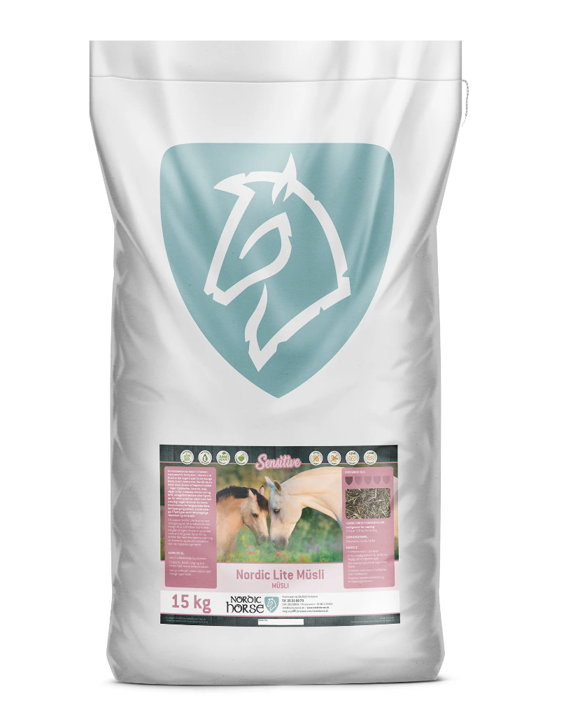 Nordic Lite Müsli er et strukturfyldt fuldfoder, udviklet til heste med sensitiv fordøjelse og til nøjsomme heste med tendens til foderintolerancer eller fedtdepoter. Denne müsli er sammensat af råvarer i absolut topkvalitet og indeholder hverken fyldstoffer, lucerne, soja, ølgær, melasse, konserveringsmidler, GMO eller smagsforstærkere. Resultatet er et naturligt og skånsomt foder med fokus på høj optagelighed og optimal sundhed.