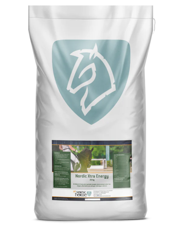 Nordic Xtra Energy er et tilskud udviklet til konkurrenceheste og heste i træning, som har behov for ekstra energi og udholdenhed. Det tilfører hesten en stabil og vedvarende energikilde, der gør det ideelt til flerdages stævner eller perioder hvor hesten mangler ekstra energi i den daglige træning.