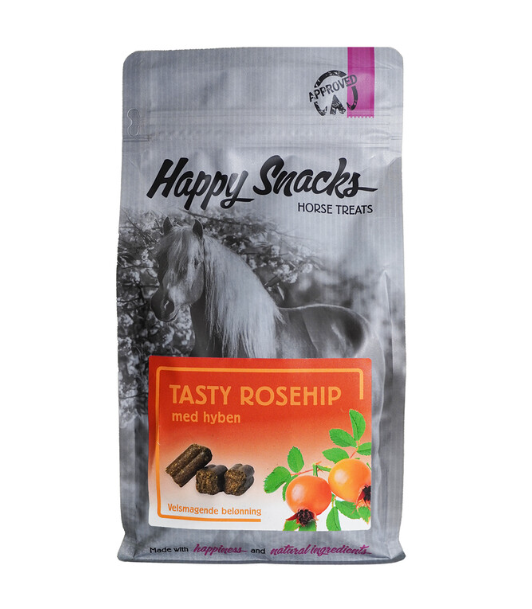 Til hesten der fortjener en velsmagende belønning med hyben – Happy Snacks Tasty Rosehip! Så forkæl din bedste ven med snacken, der får munden til at løbe i vand.