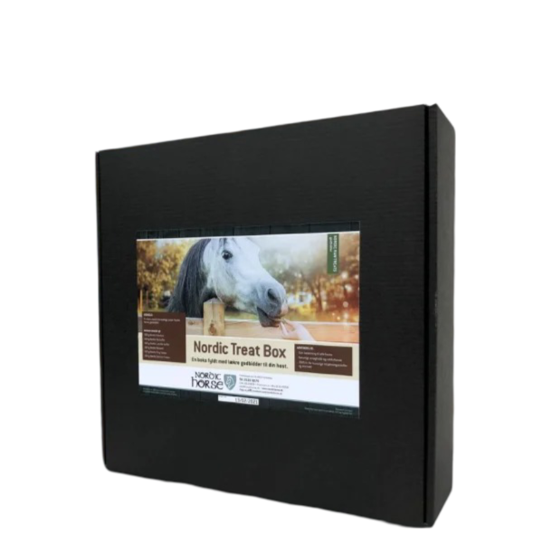 Nordic Treat Box er en lækker gaveæske med seks forskellige poser af Nordic Horse godbidder. Her får du en varieret samling af naturligt smagfulde og velduftende godbidder, som enhver hest vil elske. Alle godbidderne er 100% fri for kunstige tilsætningsstoffer og aromaer, og egner sig perfekt som en sund og velsmagende belønning i hverdagen.
