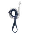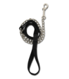 Hingstekæde i sort, fremstillet af blødt og behageligt webbing, kombineret med en skinnende kæde og en solid karabinhage, der giver et elegant og funktionelt udtryk.