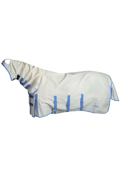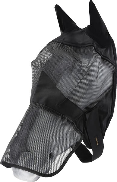 Omkring øjne og ører er fluemasken udstyret med finmasket net, der effektivt skærmer mod fluer, myg, klæger og andre insekter. Nettet er konstrueret med nøje placerede syninger, som holder det væk fra øjnene og sikrer, at hesten ikke generes. Det reducerer samtidig risikoen for øjenbetændelse og irritation omkring ørerne, som ofte opstår i sommermånederne.