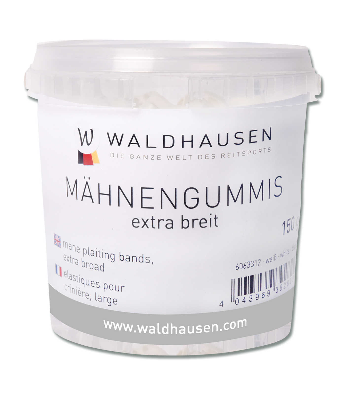 Ekstra brede manelastikker der leveres i en praktisk spand og er fremstillet i slidstærk silikone, som er både rivefast og superelastisk. Elastikkerne er særligt skånsomme mod hestens man og behagelige at arbejde med for dine hænder, så fletningen bliver både nem og komfortabel.
