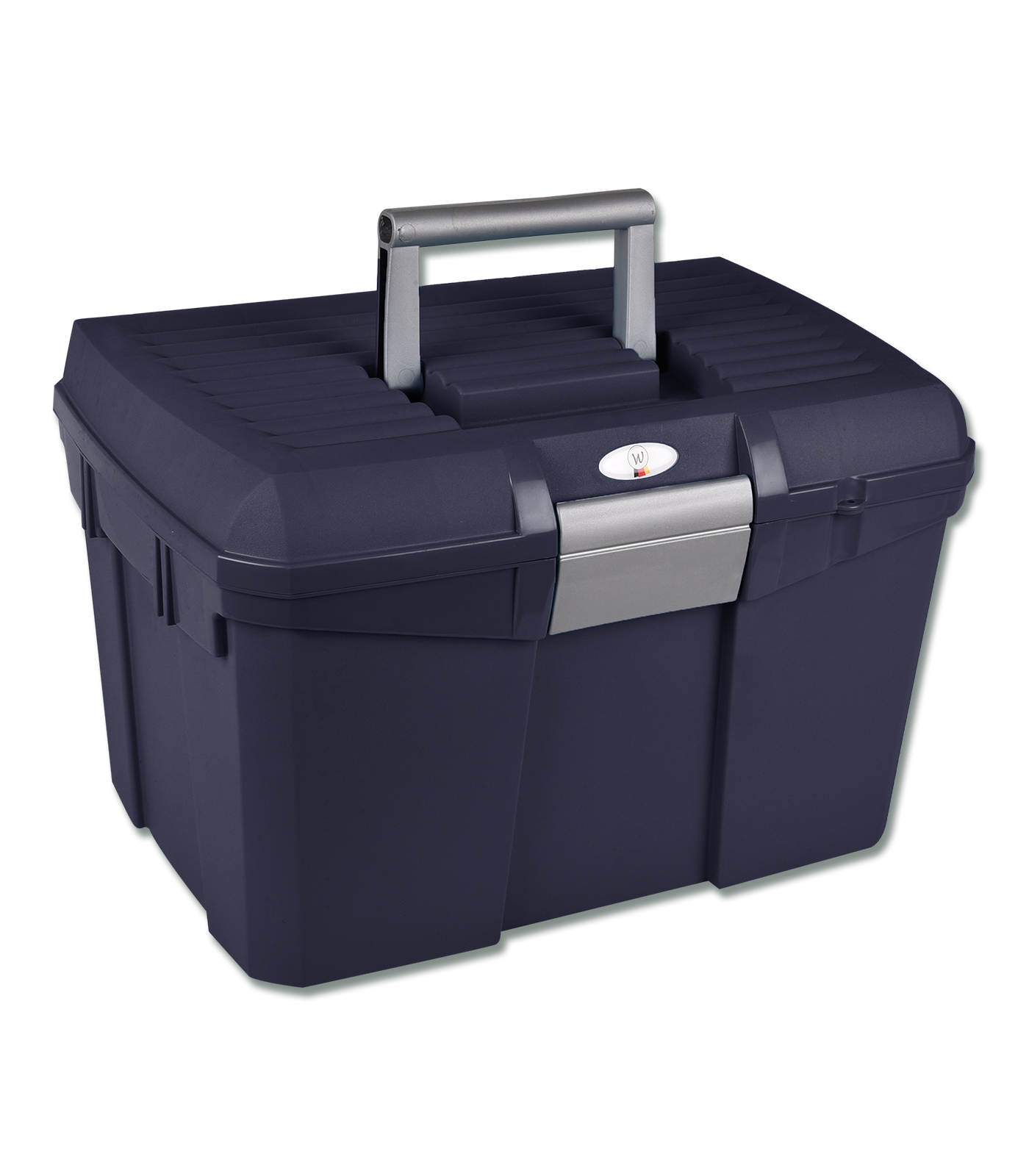 Striglekassen kan bære op til 100 kg og fungerer dermed også som en stabil skammel, når du har brug for lidt ekstra højde. Den er desuden aflåselig, så dine plejeredskaber opbevares sikkert både i stalden og på farten.
