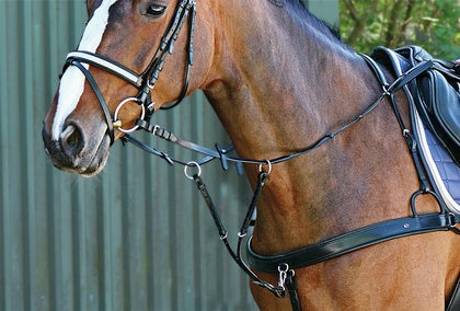 Super blødt fortøj fra HorseGuard i læder med aftagelig martingal. Fortøjet er med klipsspænde for let vedhæftning til gjorden, samt med 7 justeringspunkter for at opnå den perfekte pasform.