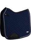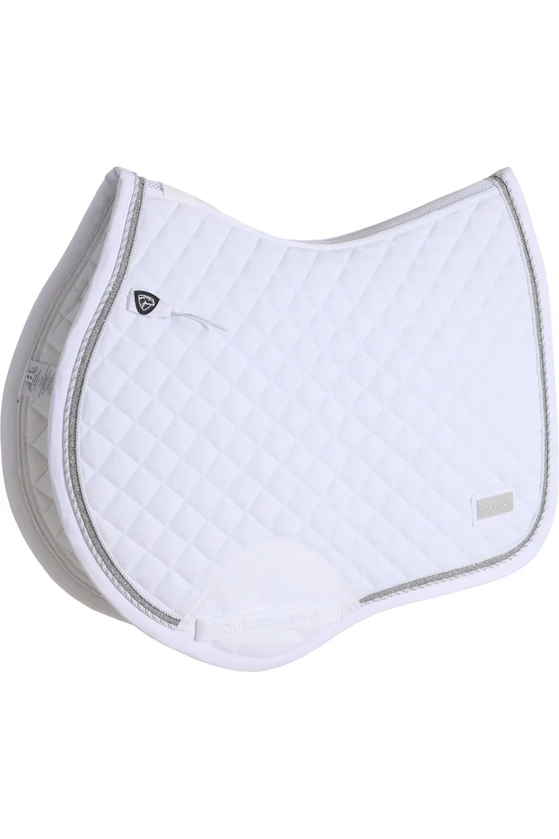 3D mesh-ryg giver ekstra ventilation, så din hest kan bevæge sig frit og ubesværet. Den flade krystalglitterkant og den smalle snorepiping tilføjer et strejf af luksus, der fanger blikket på banen. Med et vævet sateen-logo på bagsiden, en skinnende sølvfarvet metal-logo-badge på venstre side og tone-i-tone Catago-broderi ved gjordstropperne udstråler du og din hest sofistikeret elegance. Forstærkningen under gjordstroppen sikrer holdbarhed og stabilitet.
