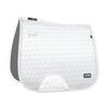 Quiltingen er særligt udformet i mønster som en hestesko, hvilket giver et unikt og stilfuldt udtryk. Nederst er underlaget forstærket med en indsats, der beskytter mod slid fra gjorden. Dressurversionen er desuden udstyret med praktiske D-ringstropper for nem fastgørelse.