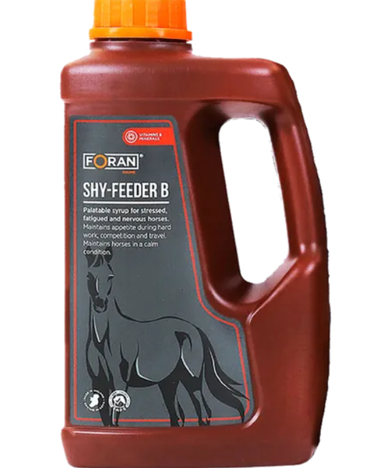 Foran Equine Shy Feeder er et koncentreret B-vitamin-tilskud i velsmagende sirup, der er designet til at støtte heste med tendens til stress, især i forbindelse med hård og intensiv træning, skiftende miljøer og konkurrencedeltagelse. Det er også ideelt til heste med nedsat appetit og heste, der gennemgår fældningsperioder.