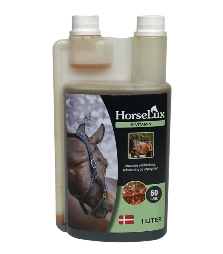 Hvis din hest mangler energi, kan et tilskud af B-vitaminer være med til at gendanne dens vitalitet og generelle trivsel. HorseLux Flydende B-vitamin er letoptageligt og nemt at dosere, hvilket sikrer maksimal effekt og hurtig optagelse. Ideelt til heste med øget behov for B-vitaminer, herunder heste i fældning, hårdt arbejde eller stressede situationer.