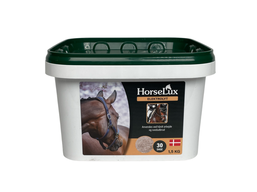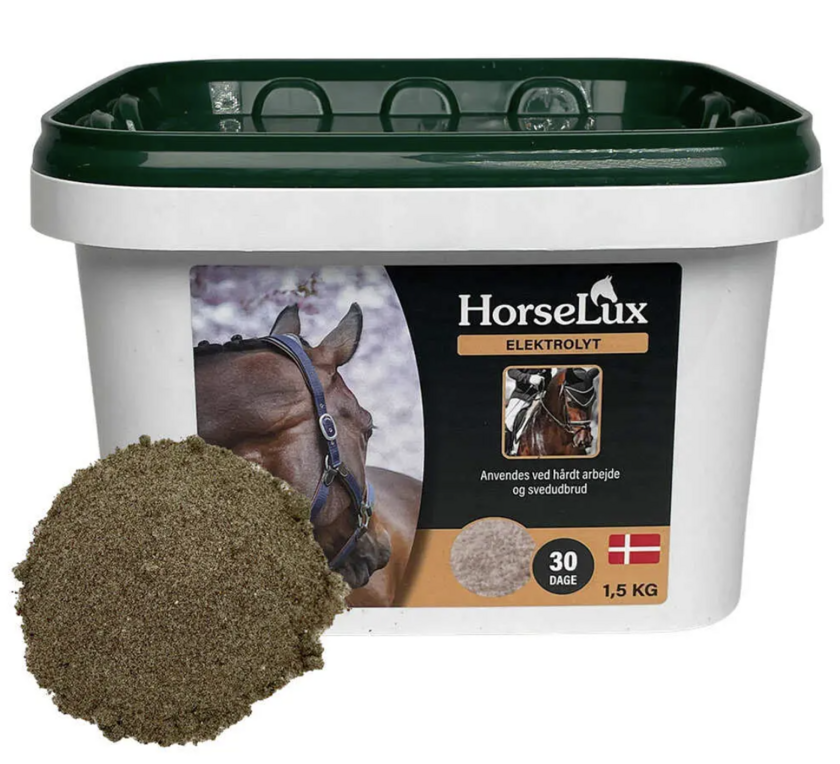 HorseLux Elektrolyt er et effektivt og velsmagende tilskud, der hjælper med at opretholde hestens elektrolytbalance, væskestatus og præstationsevne. Under træning, konkurrence eller varme forhold mister hesten vigtige elektrolytter gennem sved og urin, hvilket kan føre til dehydrering, muskelkramper og nedsat ydeevne.