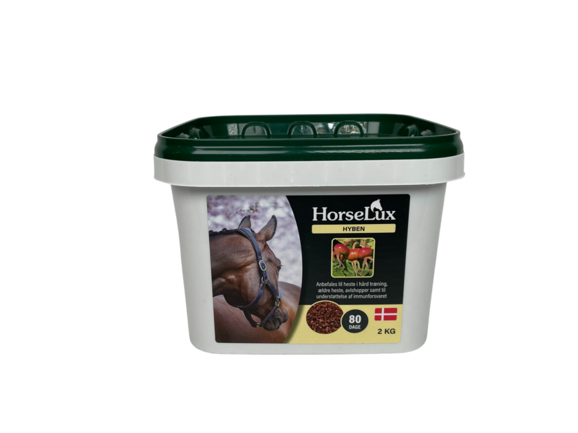 HorseLux hyben er et 100% rent naturprodukt (hunderose), fremstillet af solmodne og tørrede hybenfrugter. Hyben har i århundreder været brugt som et naturligt tilskud og er kendt for sit høje indhold af C-vitamin og beta-karoten. Når hyben er tørret og granuleret, kan det nemt tilsættes hestens foder.