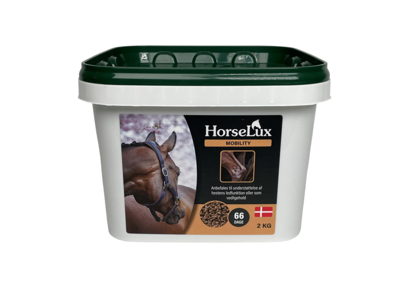 HorseLux Mobility er et høj kvalitets fodertilskud udviklet til at styrke din hests led, sener og bindevæv, så den kan bevæge sig smidigt og ubesværet. Med en unik sammensætning af grønlæbet musling, chondroitin og MSM understøtter produktet ledbruskens sundhed, reducerer stivhed og fremmer naturlig bevægelsesfrihed.