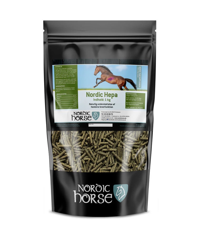Nordic Hepa er sammensat af specifikke næringsstoffer, der stimulerer og understøtter hestens leverfunktion. Leveren er et af kroppens mest vitale organer med ansvar for mere end 500 forskellige funktioner, herunder filtrering af blodet, nedbrydning af affaldsstoffer og regulering af kroppens indre balance. Den har desuden en indirekte men afgørende indflydelse på hormonsystem, nervesystem og immunforsvar.