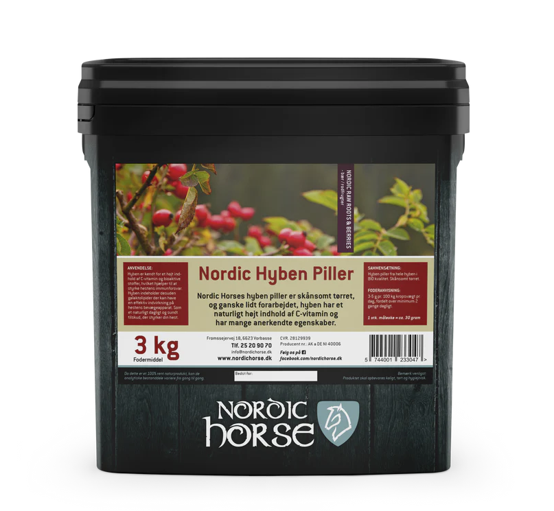 Nordic Hyben Piller er velegnet til heste i træning, til avlsheste og ældre heste, men kan med fordel gives til alle heste som en naturlig kilde til C-vitamin og som et sundt dagligt supplement. Pilleformen gør det nemt at dosere og anvende i den daglige fodring, samtidig med at hesten får glæde af hybens styrkende og balancerende virkning.