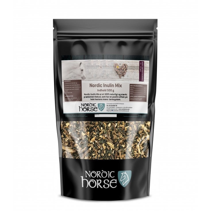 Nordic Inulin Mix er et 100 % naturligt og stærkt præbiotisk tilskud, der har en positiv effekt på hele hestens mave- og tarmsystem. Med sit høje indhold af inulin og grøn te understøtter blandingen både fordøjelsen, stofskiftet og immunforsvaret. Samtidig virker Inulin Mix blodsukkerstabiliserende og kan være en effektiv hjælp til heste, der skal tabe sig, heste med stofskifteproblemer eller heste med sart mave.
