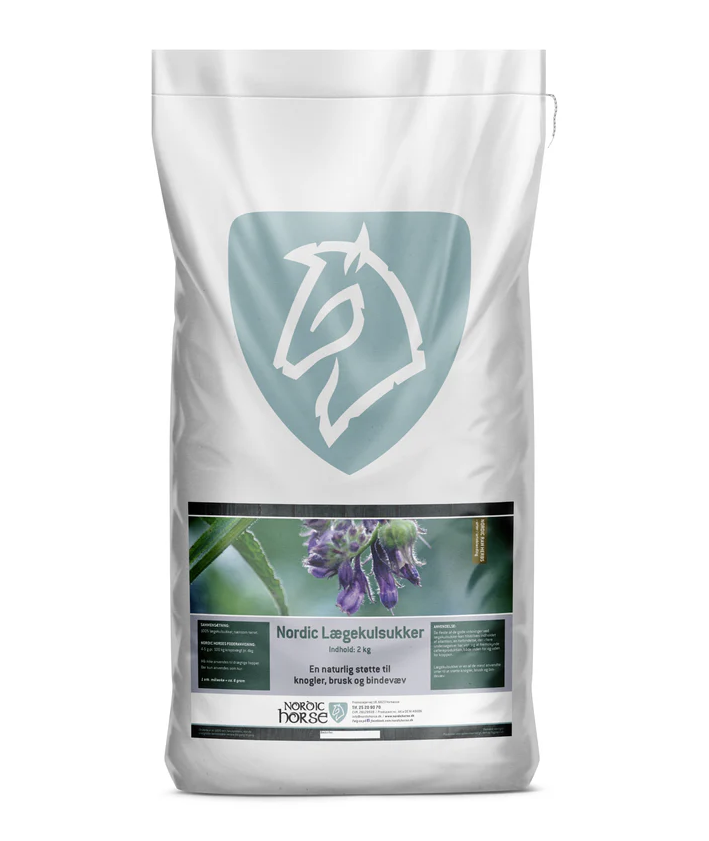 Nordic Lægekulsukker er en af de mest anvendte urter til at støtte hestens knogler, brusk og bindevæv. Urten indeholder allantoin, en naturlig forbindelse som i flere undersøgelser har vist sig at kunne fremskynde cellereproduktion både indvendigt og udvendigt i kroppen.