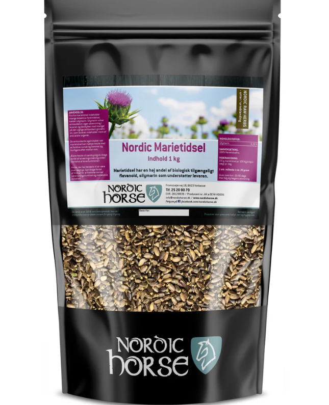 Nordic Marietidsel er dermed et naturligt valg for heste, der har brug for ekstra støtte til leveren, både forebyggende og i perioder med øget pres på kroppen.