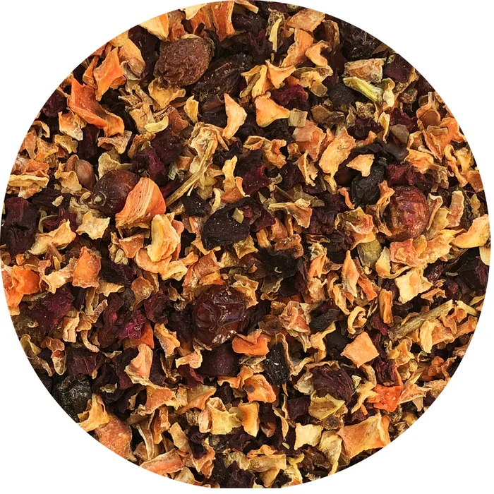 Blandingen er sammensat af næringsrige råvarer, der hver især bidrager med unikke egenskaber. Gulerødder tilfører store mængder beta-caroten, en vigtig antioxidant der styrker hud og slimhinder og understøtter både lever og skjoldbruskkirtel. Rødbede er rig på jern, folinsyre, kalium og vitaminer, som har en dokumenteret positiv effekt på immunsystemet. Hyben bidrager med naturligt beta-caroten, mineraler og store mængder C-vitamin i kombination med bioflavonoider, der øger optageligheden og giver en endnu stærkere effekt på immunforsvaret.