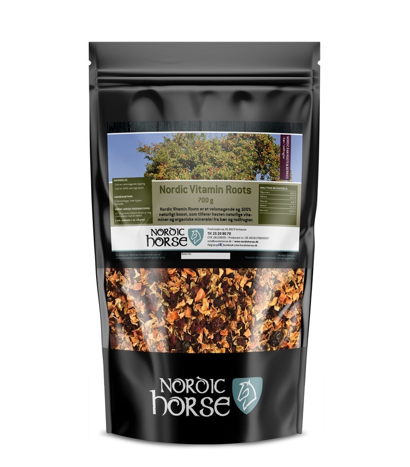 Nordic Vitamin Roots er et 100% naturligt energiboost, der tilfører hesten et væld af aktive stoffer og et højt indhold af vitaminer og mineraler. Vitamin Roots styrker immunforsvaret og gavner leddene, samtidig med at det bidrager til øget vitalitet og modstandskraft.