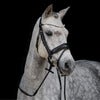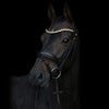 De funklende sten er smukt placeret og giver pandebåndet et luksuriøst præg, der passer perfekt til både træning og stævne, når udstyret gerne må have lidt ekstra wow effekt.