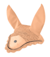 Den sølvfarvede metalplade er centreret på en stofapplikation i blankt materiale, som skaber et harmonisk og eksklusivt look sammen med resten af sættet. Hutten beskytter effektivt hesten mod generende insekter, mens det elastiske materiale ved ørerne sikrer en perfekt pasform og høj komfort på hestens hoved.
