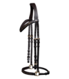 Det klassiske hannoveranske næsebånd giver en stabil og skånsom støtte, mens både næsebånd og nakkestykke er blødt polstret for maksimal komfort under ridning. Som en ekstra elegant detalje er både næsebånd og pandebånd smukt udsmykket med funklende strasssten, der giver et stilfuldt og iøjnefaldende udtryk.