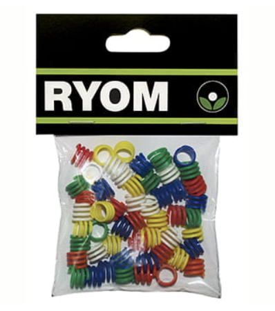 Dueringe af snoet plast i assorterede farver. Indvendig diameter på 8 mm. Leveres i SB-pose med 50 stk. Holdbare og lette at montere, ideelle til mærkning af duer.