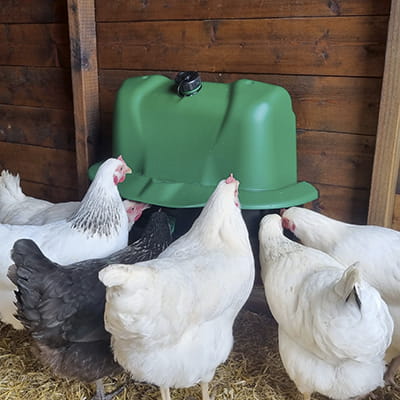 Med et praktisk regndæksel forhindrer drikkeautomaten nedfaldende affald og efterladenskaber fra vilde fugle i at forurene vandet. Dækslet hjælper desuden med at holde vandet køligt og frisk, hvilket gør det mere attraktivt. Det beskytter også medicineret vand mod UV-lys, der kan nedbryde de aktive ingredienser, hvilket gør det muligt at undgå overdosering af medicin og dermed sparer penge.