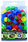 Båndringe i plast til mærkning af fjerkræ - klikkes blot om benet.