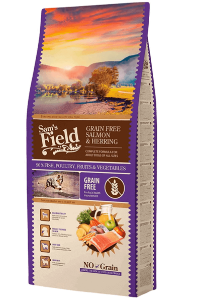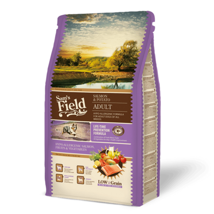 Sam’s Field Adult Salmon er et velsmagende og næringsrigt fuldfoder med 35 % laks, udviklet til voksne hunde, der har behov for et proteinrigt og fiskeholdigt foder. Dette kvalitetsfoder er ideelt for hunde med sart mave, mat pels eller behov for ekstra Omega 3 og 6 fedtsyrer.