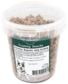 Godbidderne leveres i en praktisk og genanvendelig bøtte med håndtag, som gør det nemt at tage dem med, og det tætsluttende låg sørger for, at de holder sig friske og velsmagende længe. Whesco står for høj kvalitet og naturlige ingredienser, så du kan give din hund en sund, kornfri belønning med god samvittighed.
