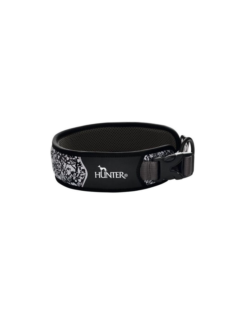 Hunter Divo halsbånd med trækaflastning, stærkt reflekterende 3M™ Scotchlite™ Reflective Material elementer. Halsbåndet er dejligt bredt og derved behageligt for hunden at have på.
