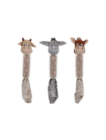 Legetøjet er 65 cm langt og fremstillet af blød, stoppet polyester, som gør det behageligt at bære, ruske og kramme. Ben og ører har knitrelyde, der vækker hundens nysgerrighed, mens både kroppen og snuden indeholder pivelyde, som giver ekstra variation og legesjov. De varme brun-orange farver skaber et venligt og charmerende udtryk, der appellerer til de fleste hunde.