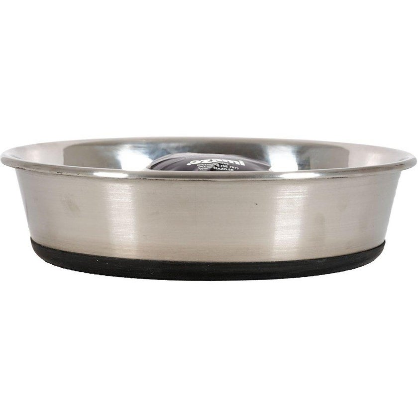 Slow-feed hundeskål i rustfri stål, som egner sig rigtig godt til hurtigt-spisende hunde. Med en forhøjning i midten, skal der arbejdes lidt for maden, og det gør det sværere for din hund at sluge maden.