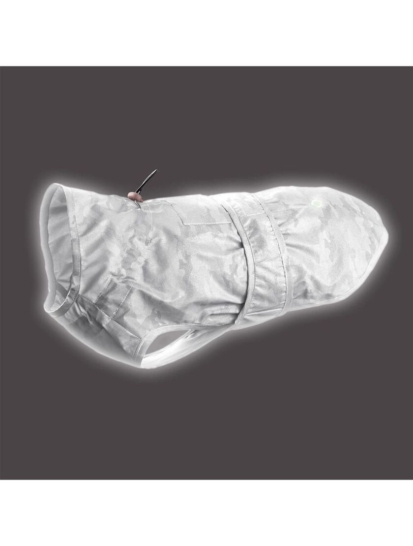 Huka Go regnjakken fra Hunter er en smart og funktionel jakke, der beskytter hunden mod at blive gennemblødt i regnvejr. Det fuldt reflekterende materiale giver samtidig øget sikkerhed i mørke og ved dårlig sigtbarhed, mens det diskrete camouflagemønster i sølv gør jakken både moderne og stilfuld.