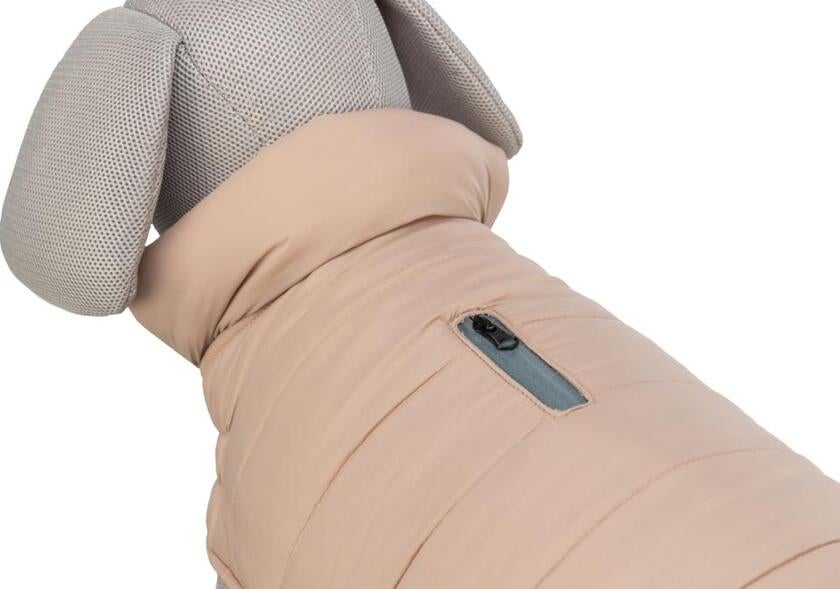 Lesmont frakken kan nemt kombineres med en sele og har en justerbar elastisk front, som sikrer en optimal pasform. Velcrolukningen i bryst- og maveområdet gør frakken hurtig og enkel at tage af og på. Trixie Lesmont vinterfrakke er fremstillet af slidstærkt polyester og er vandafvisende, hvilket gør den ideel til både regnfulde og kolde dage.