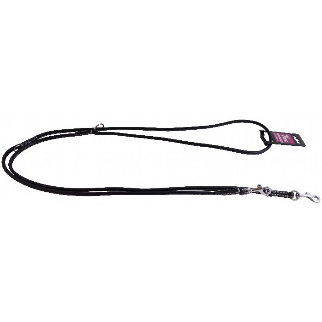 Eksklusiv rund dressurline i høj kvalitet, fremstillet af særligt blødt, rundsyet okselæder med flotte hvide stikninger. Læderet er behageligt mod hundens pels og ligger blødt og sikkert i hånden, hvilket giver en komfortabel oplevelse for både hund og fører.
