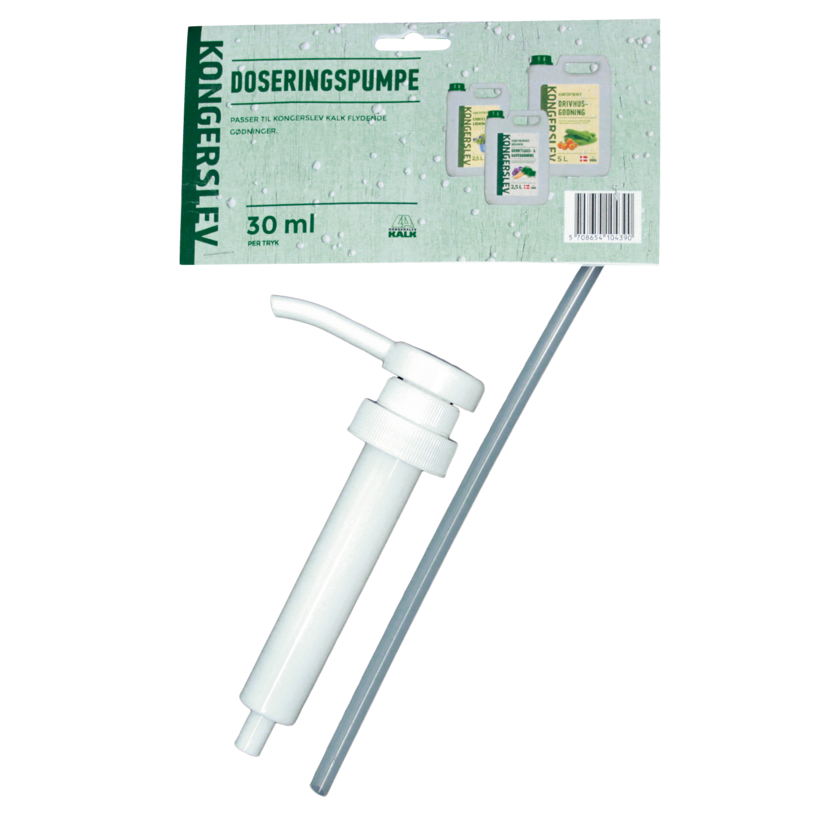 Doserings pumpe der passer til alle 2,5 og 5,0 ltr. med 40 mm. gevind. Pumpen giver 30 ml. pr. tryk.