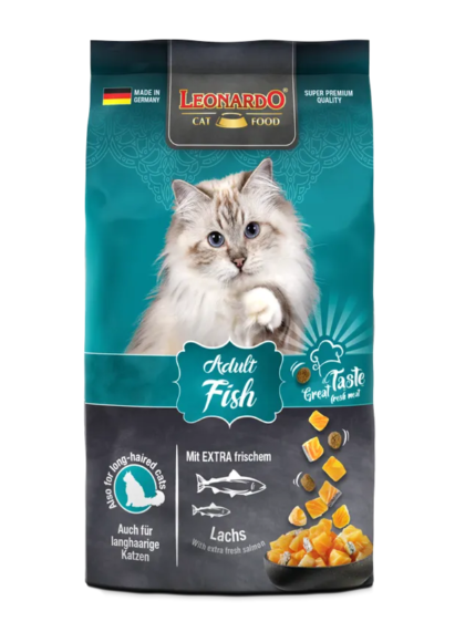 Leonardo Adult Fisk er et afbalanceret fuldfoder til voksne katte fra 1-årsalderen, som elsker smagen af fisk og skaldyr. Med et højt indhold af animalsk protein, hvor hele 85 % af det samlede protein stammer fra animalske kilder, får din kat den næring, den har brug for til et aktivt og sundt liv.