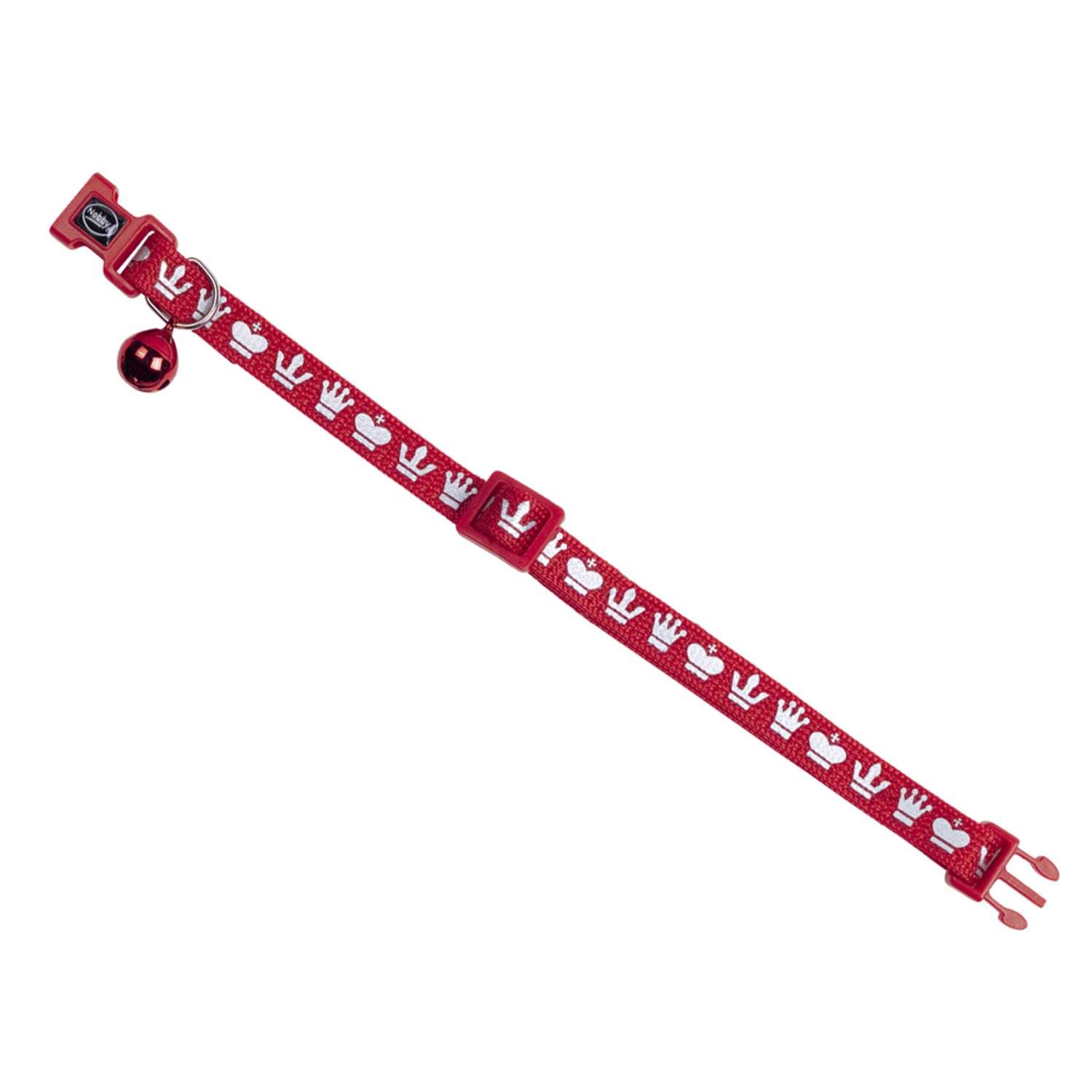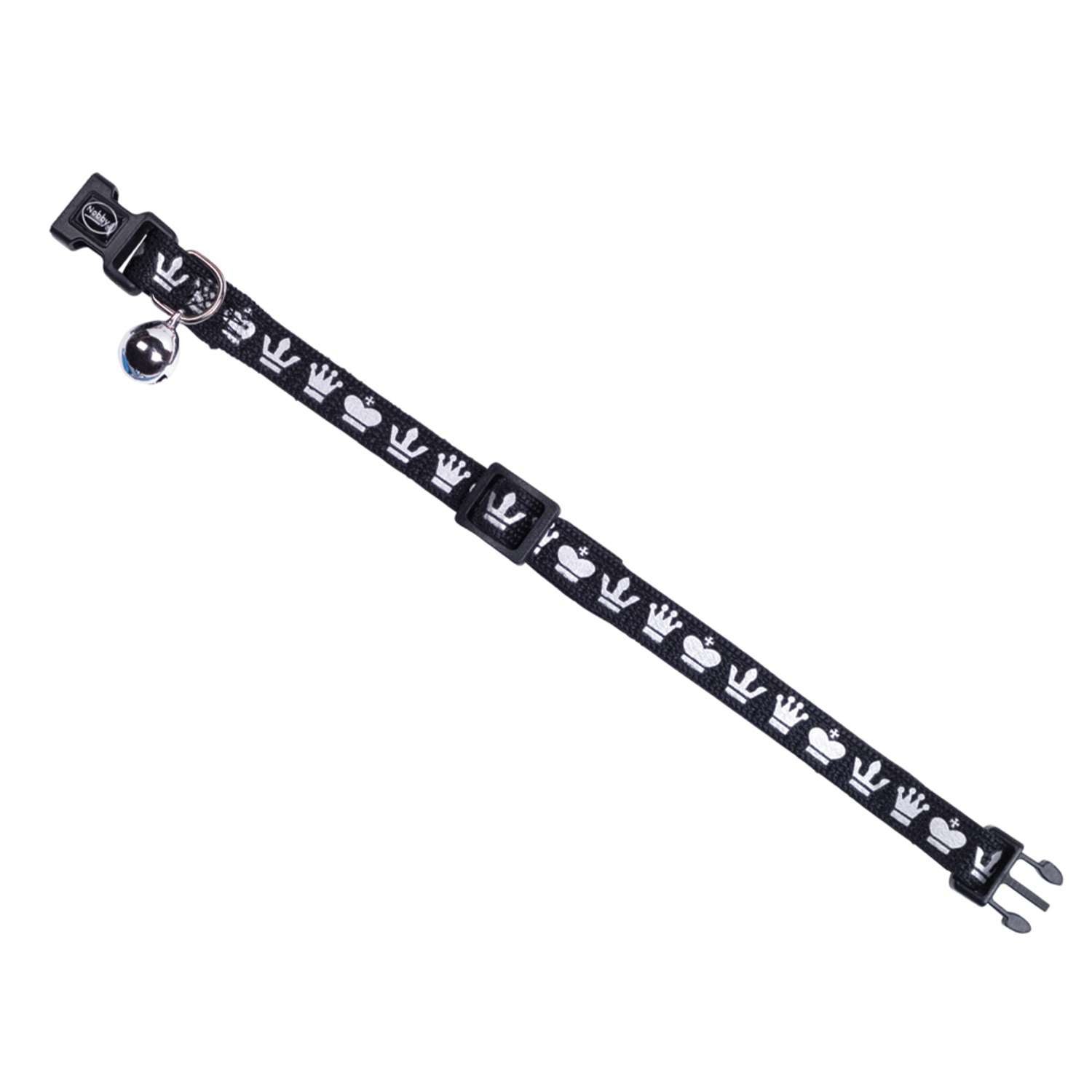 Et stilfuldt og funktionelt halsbånd til katte. Halsbåndet er fremstillet af slidstærkt nylon og har et dekorativt mønster med små kroner, der giver et eksklusivt, kongeligt udtryk.