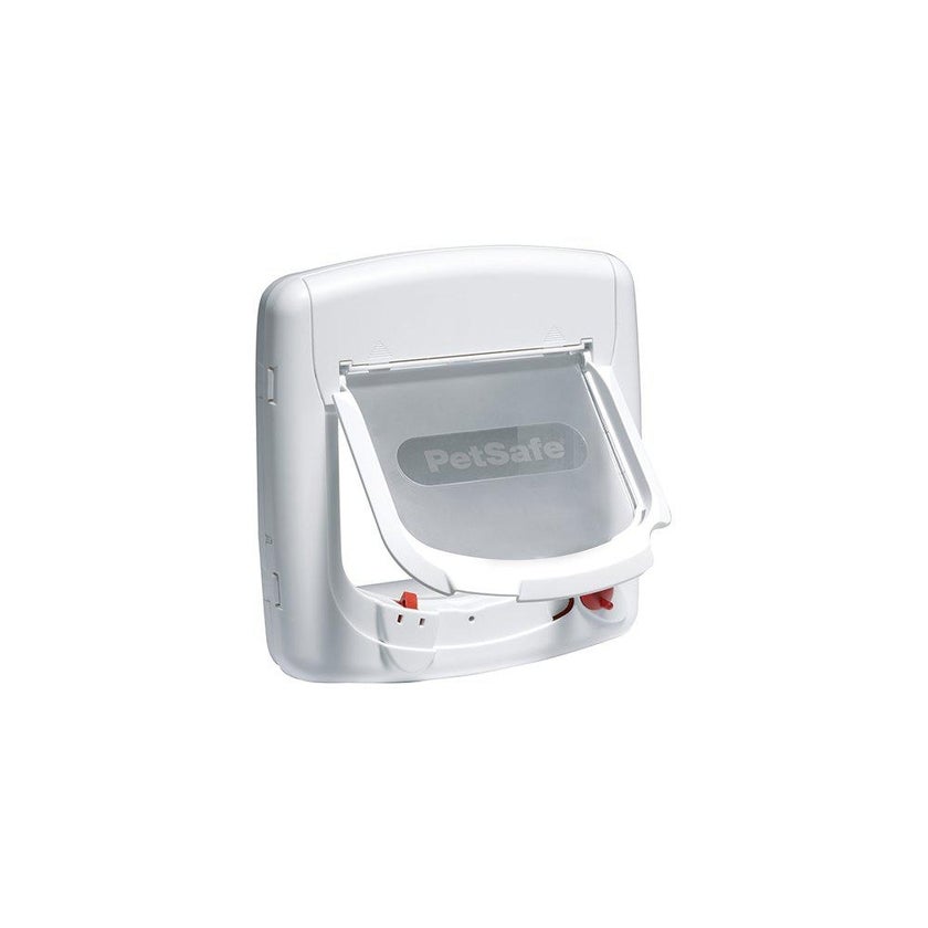 Magnetisk nøgle i halsbåndet holder ukendte katte ude, og giver din kat adgang til at komme ind. Staywell kattelem har 4 forskellige låsemuligheder: kun ind, kun ude, åben, låst.
