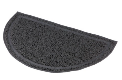 Praktisk måtte lavet af skridsikker PVC. Måtten har små strimler, som gør at katten ikke tager kattegrus med under poterne væk fra kattetoilettet.