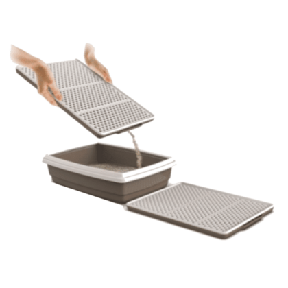 Systemet kræver ingen scoop eller linerposer, hvilket gør rengøringen mere praktisk og mindre tidskrævende. De solide bakker er støbt i ét stykke, hvilket forhindrer spild og lækager, mens de høje sider hjælper med at forhindre affaldsspredning.