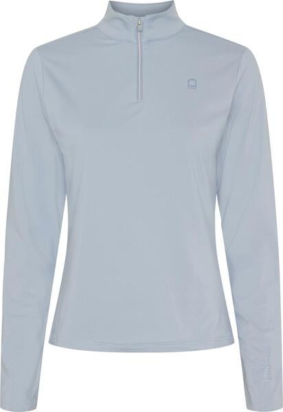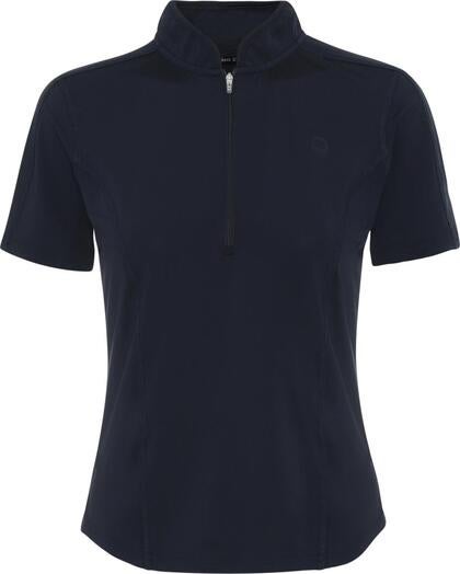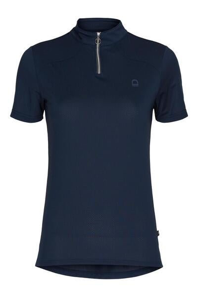 Den unikke pin-drop-effekt med vertikale striber giver stoffet et flot udtryk og sikrer naturlig ventilation på varme dage. Du vil opleve en behagelig kølighed, selv når solen står højt på himlen. T-shirten er ideel som ridetrøje til de varme rideture, hvor du har brug for både komfort og bevægelsesfrihed.